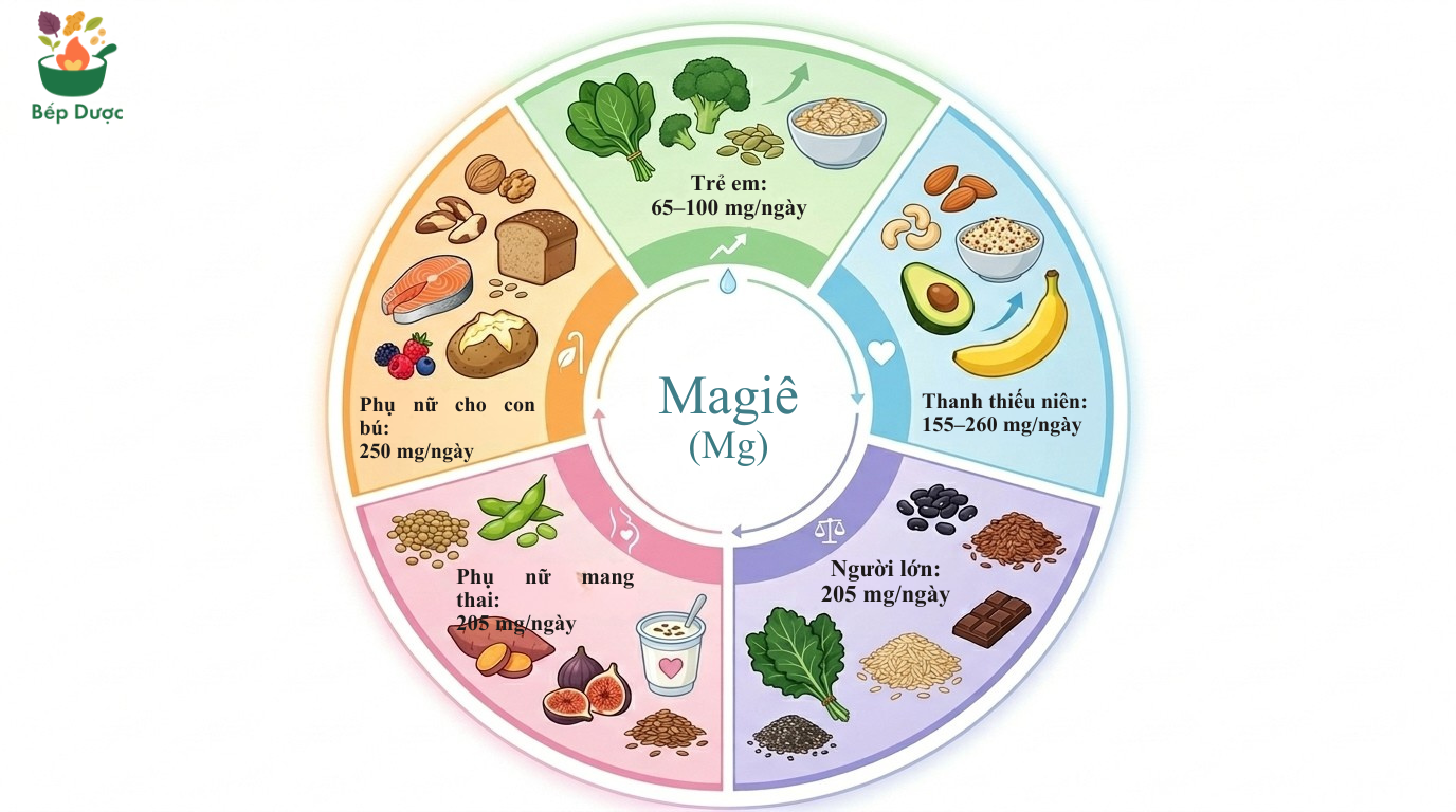 Những thay đổi này cho thấy nhu cầu magie không chỉ phụ thuộc vào độ tuổi mà còn chịu ảnh hưởng bởi tình trạng sinh lý đặc thù