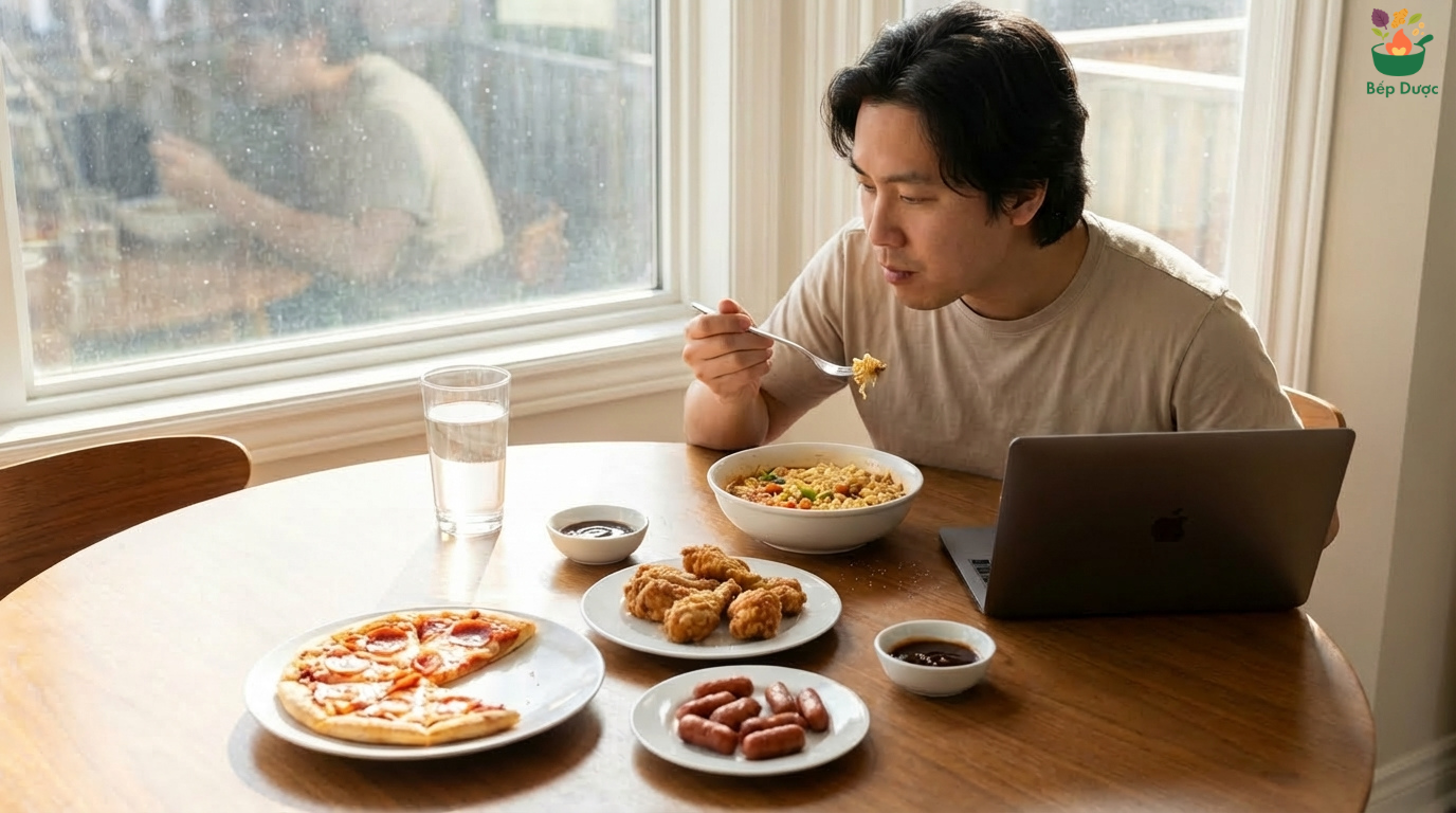 Một trong những hiểu lầm phổ biến nhất là cho rằng không ăn mặn đồng nghĩa với việc không tiêu thụ nhiều muối. Tuy nhiên, trong chế độ ăn hiện đại, lượng muối không chỉ đến từ việc nêm nếm khi nấu ăn mà còn tồn tại “ẩn” trong rất nhiều thực phẩm quen thuộc như đồ chế biến sẵn, thức ăn ngoài hàng và các loại gia vị như tương ớt, tương cà , nước sốt, gia vị ướp chế biến sẵn… Nhiều tài liệu cũng chỉ ra rằng, trong nhiều quốc gia, phần lớn lượng muối trong khẩu phần ăn đến từ thực phẩm chế biến và các bữa ăn ngoài gia đình, chứ không phải từ muối thêm vào khi nấu. Điều này có nghĩa là một người hoàn toàn có thể không ăn mặn nhưng vẫn đang tiêu thụ lượng muối cao hơn khuyến nghị mỗi ngày.